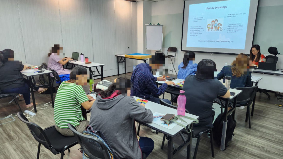 Jeanie 曾在一家社会服务机构为社工和辅导员提供创意艺术和游戏治疗的培训。她现在为 Orego 此机构提供培训,帮助社工、学校辅导员、教师和家长更了解如何使用创意艺术和游戏治疗,让有情绪和行为问题的儿童/青少年得到支持。